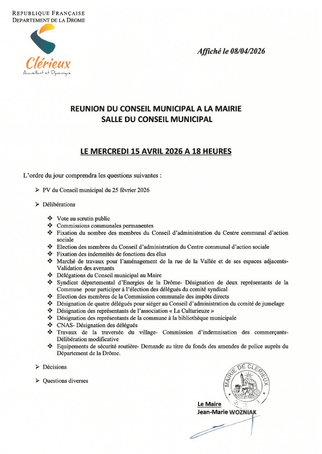 > Conseil Municipal du 15 avril 2026 à 18h